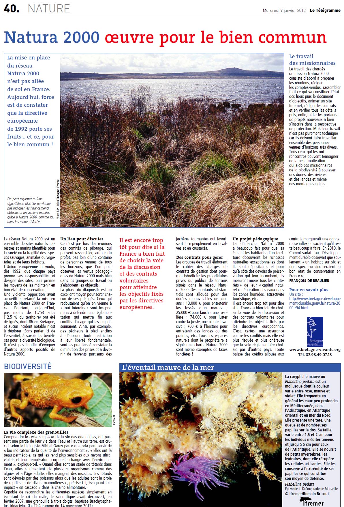 09/01/2013 Natura 2000 en Bretagne - oeuvre pour le bien commun Article de Télégramme à lire absoluement ! Découvrez cet article ! Retour à la liste